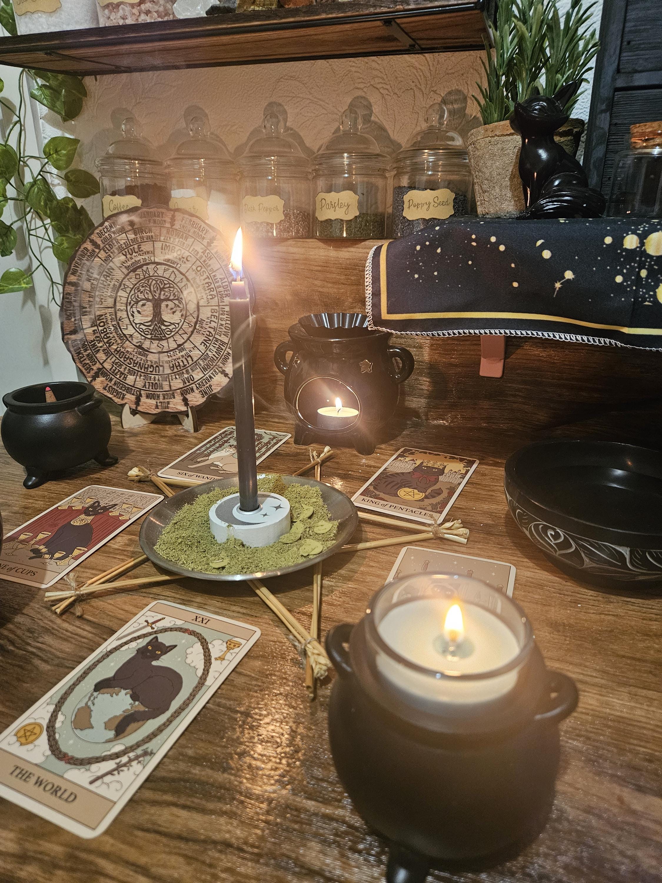 ă…… Ritual includes candles, herbs/spices, colour, incense, crystals, and focused energy work