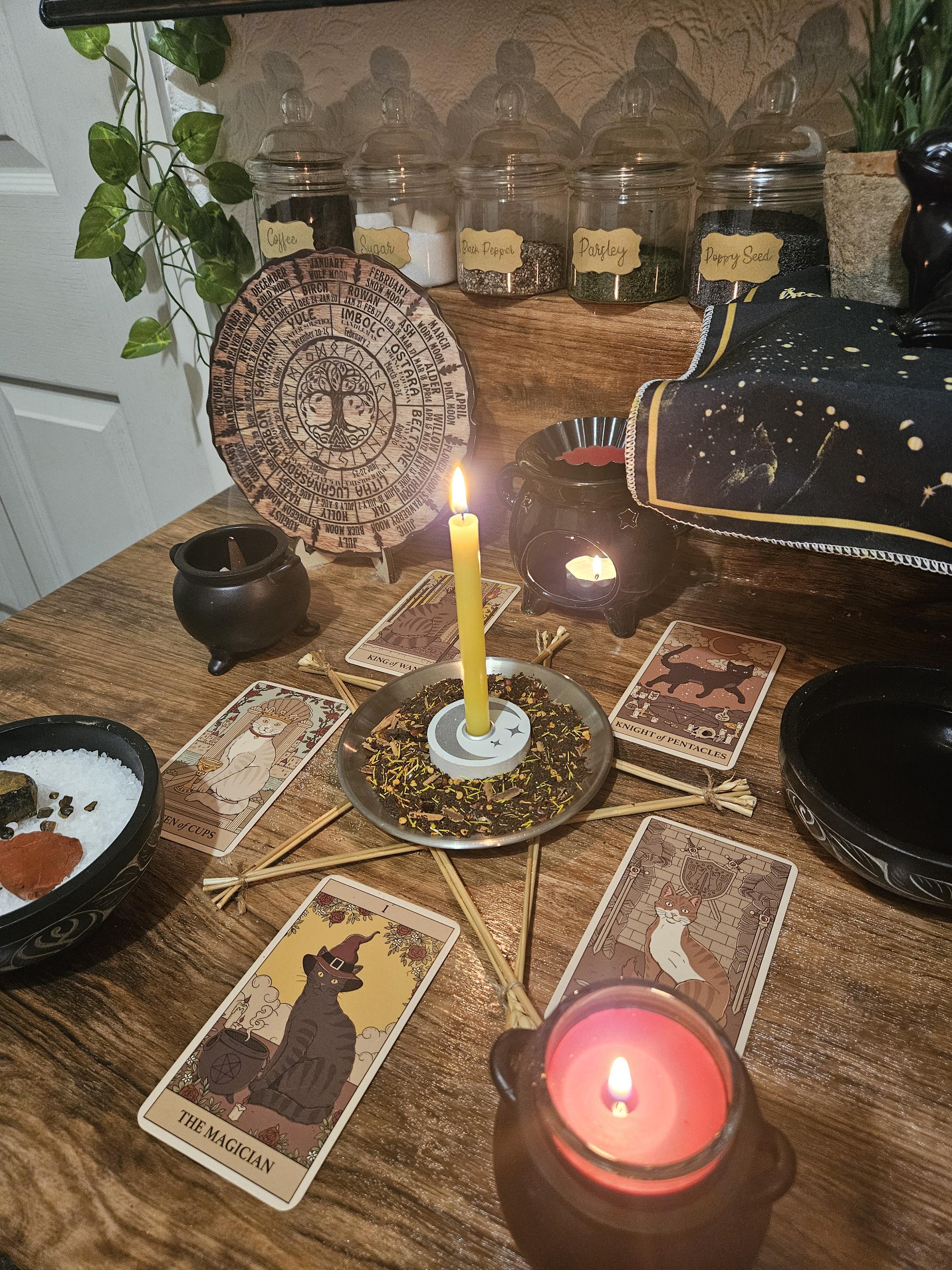 ă…… Ritual includes candles, herbs/spices, colour, incense, crystals, and focused energy work
