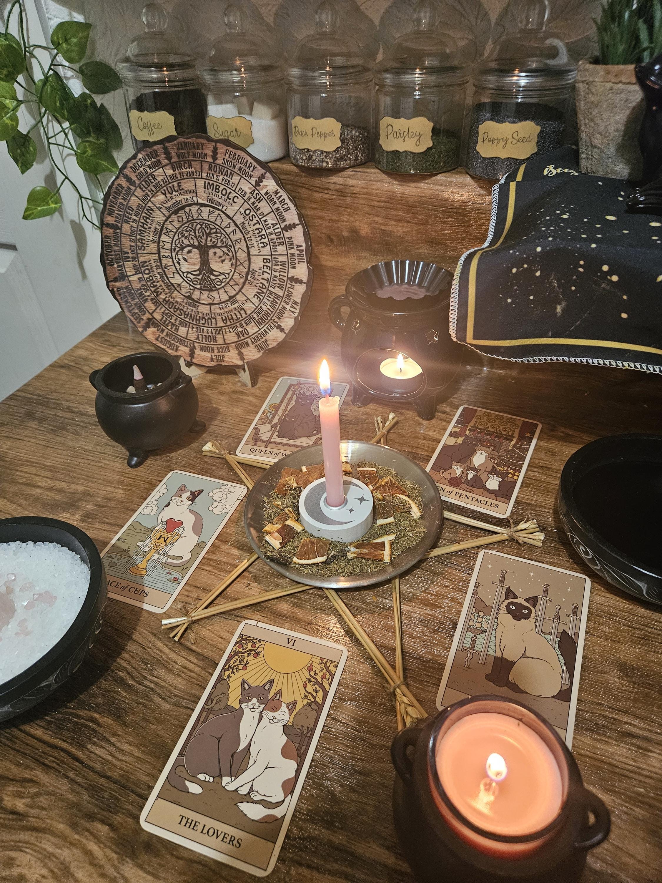 ă…… Ritual includes candles, herbs/spices, colour, incense, crystals, and focused energy work