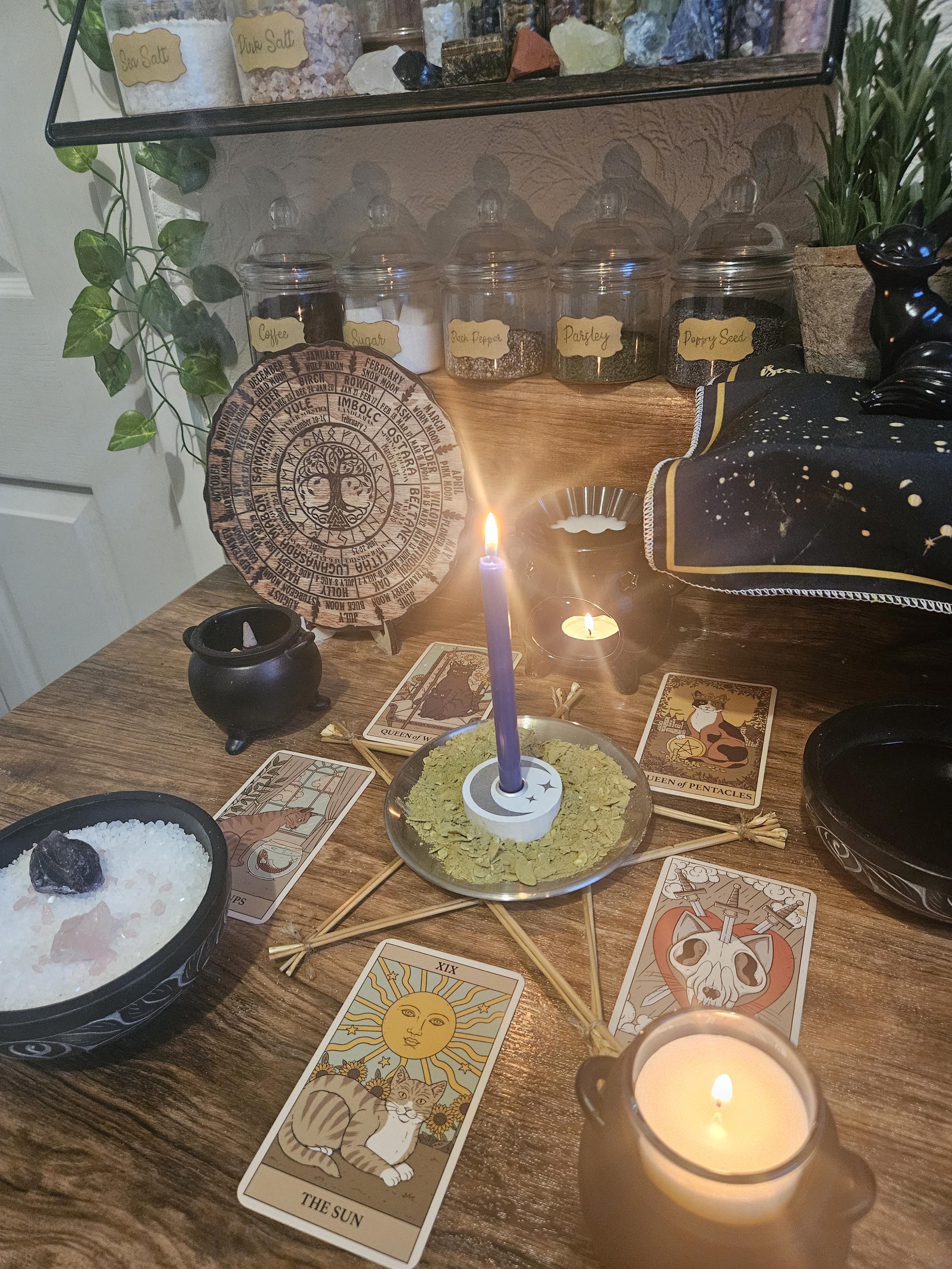 ㅅ Ritual includes candles, herbs/spices, colour, incense, crystals, and focused energy work