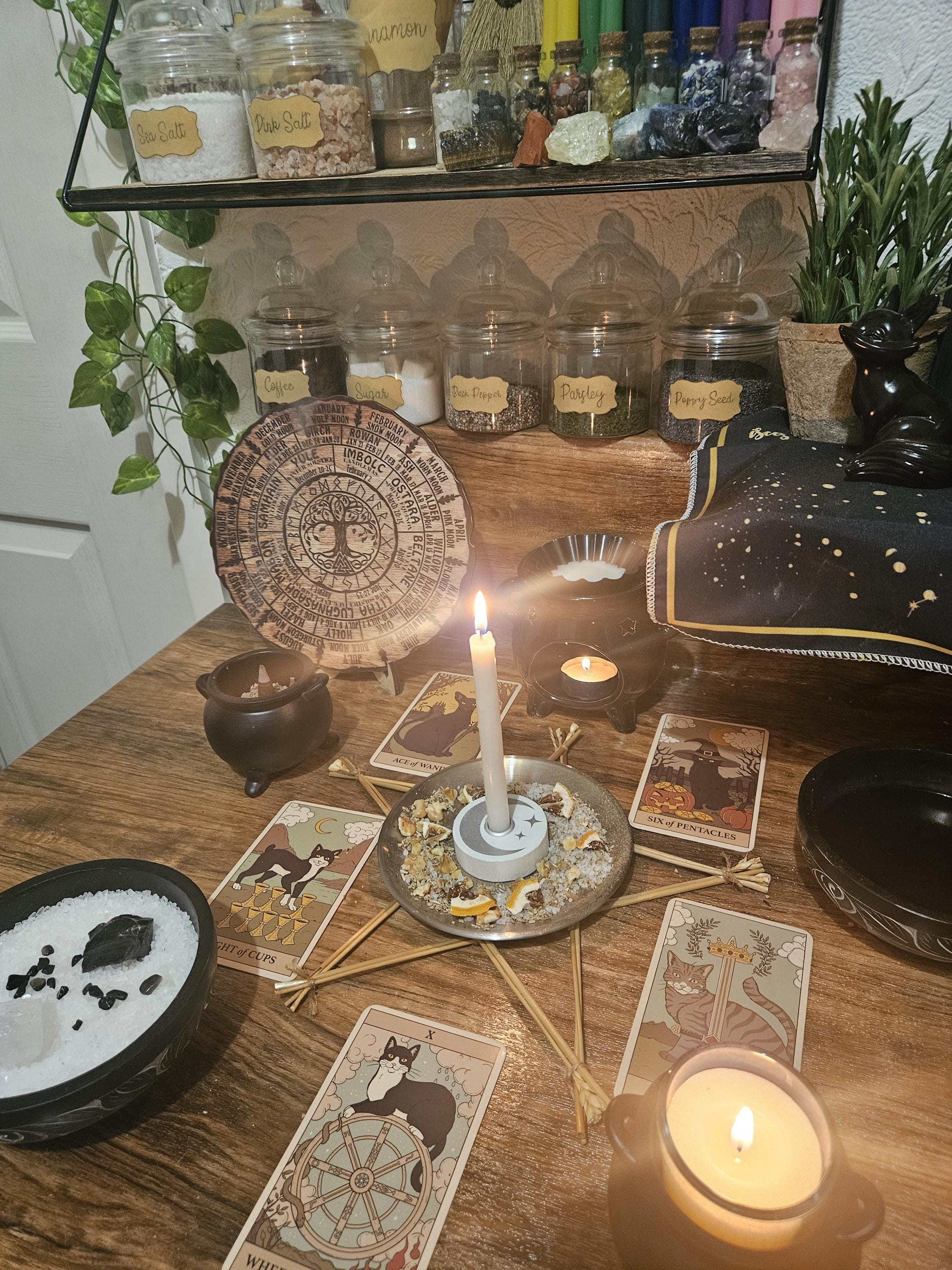 ㅅ Ritual includes candles, herbs/spices, colour, incense, crystals, and focused energy work