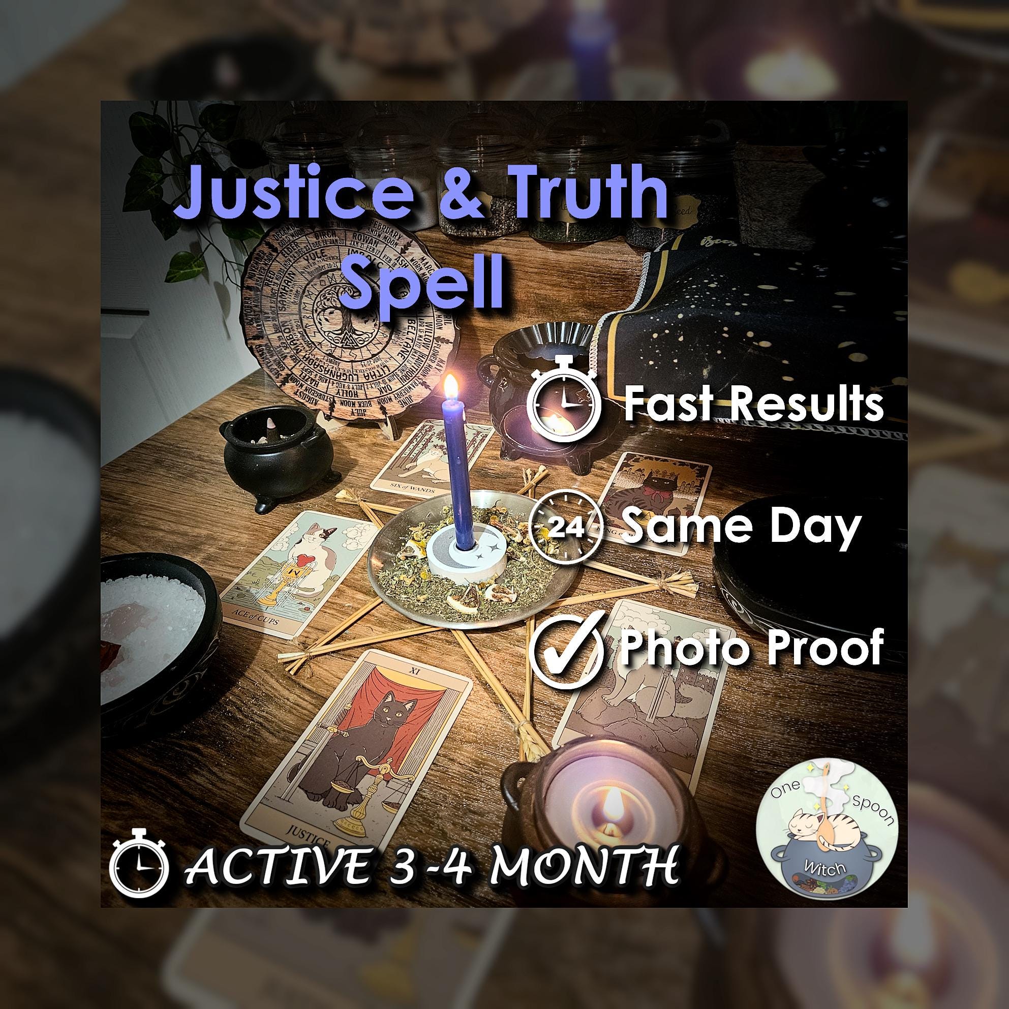 Justice and Truth Spell - SAME DAY Casting for Clarity, Victory, & Defence [Active 3-4 Month] (Tarot w/ Spell Cast)