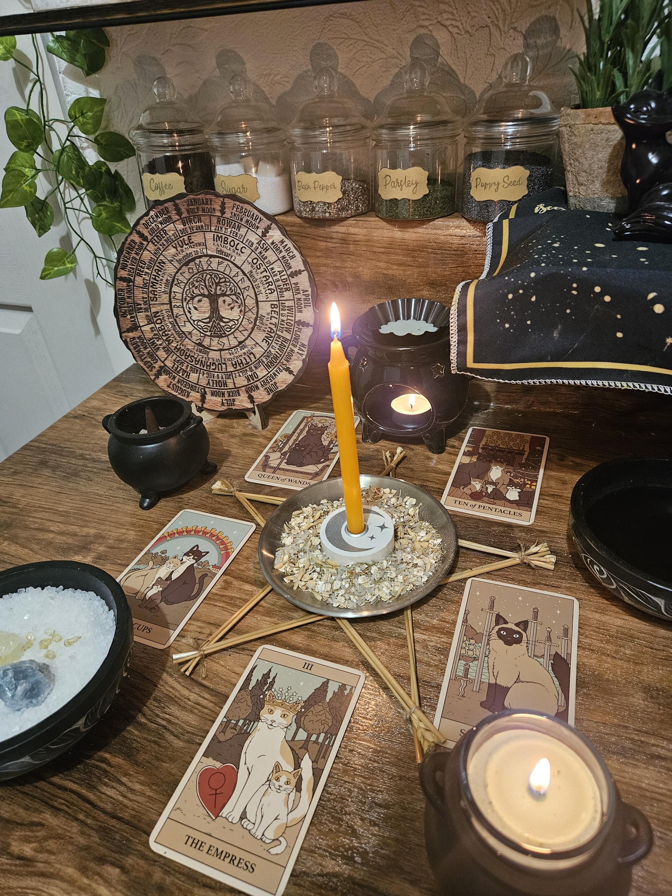 ㅅ Ritual includes candles, herbs/spices, colour, incense, crystals, and focused energy work