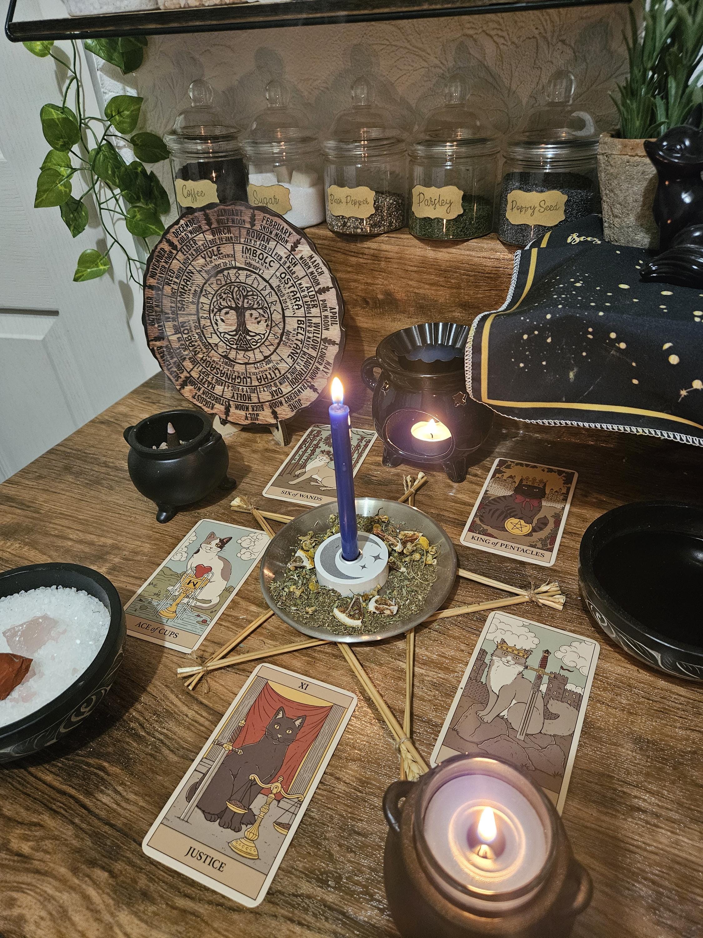 ă…… Ritual includes candles, herbs/spices, colour, incense, crystals, and focused energy work